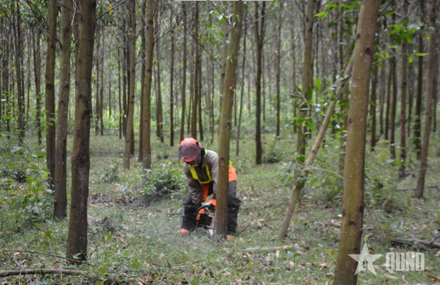 | Cưa, tỉa thưa cây khu vực rừng sản xuất ở Công ty TNHH Lâm nghiệp Quy Nhơn. |