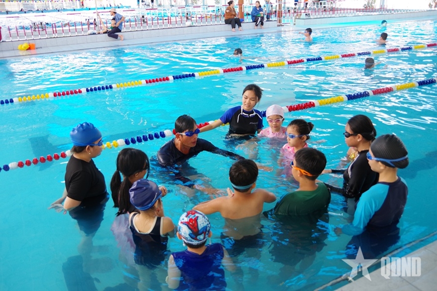Tại đây, các huấn luyện viên đều là cán bộ, chiến sĩ thuộc Trung tâm, được đào tạo bài bản, có kinh nghiệm hướng dẫn trẻ em. Cơ sở vật chất tại hồ bơi được đầu tư đầy đủ, bảo đảm môi trường học tập an toàn, sạch sẽ.