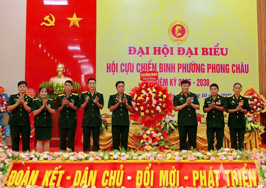 | Thiếu tướng Trần Anh Du, Chủ tịch Hội CCB tỉnh Phú Thọ tặng hoa chúc mừng Đại hội Hội CCB phường Phong Châu, nhiệm kỳ 2025-2030. |