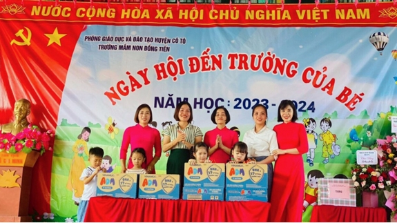 Thay mặt các em học sinh Trường Mầm non Đồng Tiến (xã Đồng Tiến, huyện Cô Tô, tỉnh Quảng Ninh), cô Nguyễn Thị Nga, hiệu trưởng nhà trường xúc động chia sẻ: “Do ảnh hưởng của mưa bão, tuyến tàu cao tốc nối liền huyện đảo Cô Tô và đất liền đang tạm ngưng hoạt động. Chúng tôi rất bất ngờ và cảm động khi Công ty Vinamilk quyết định thuê thuyền gỗ để vận chuyển sữa đến với các con đúng ngày đầu tiên quay lại trường. Đấy không chỉ là niềm vui và động lực giúp cô trò cùng cố gắng nhiều hơn trong năm học mới mà còn cho thấy dù ở đâu, những đứa trẻ Việt vẫn luôn được yêu thương và dành tặng những điều tốt nhất”.