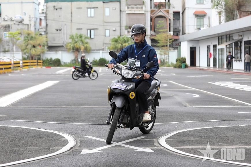| Thí sinh tham gia kỳ sát hạch giấy phép lái xe mô tô tại Hà Nội. |