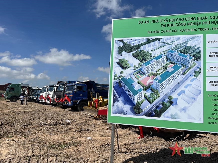 Những chủ trương, biện pháp trên đã được hiện thực hóa bằng sự kiện khởi công Dự án “Nhà ở xã hội cho công nhân, người lao động tại Khu công nghiệp Phú Hội, huyện Đức Trọng” vào ngày 23-6-2023. Dự án có tổng diện tích sử dụng đất 17.959m2, gồm 4 khối chung cư cao 5 tầng, cung cấp 303 căn hộ nhà ở xã hội, 68 căn hộ thương mại, thời gian thực hiện hai năm, sau khi hoàn thành đưa vào sử dụng giải quyết nhu cầu nhà ở cho khoảng 1.500 công nhân, người lao động tại địa phương.
