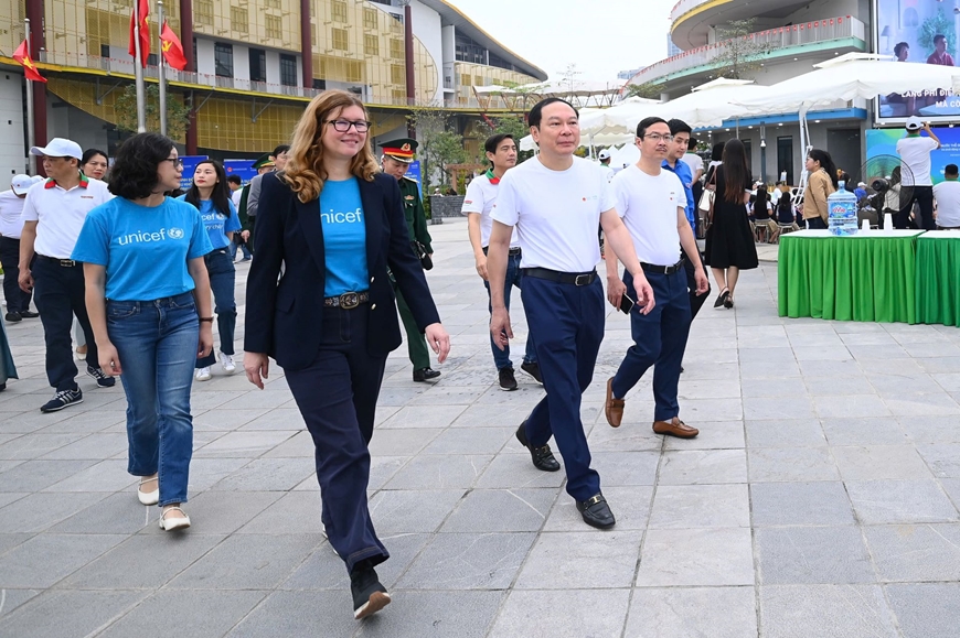 Bà Silvia Danailov cũng nhấn mạnh thông điệp: Bảo vệ môi trường chính là bảo vệ tương lai của trẻ em, đồng thời kêu gọi hành động ngay lập tức để giảm thiểu các rủi ro khí hậu, ô nhiễm không khí.