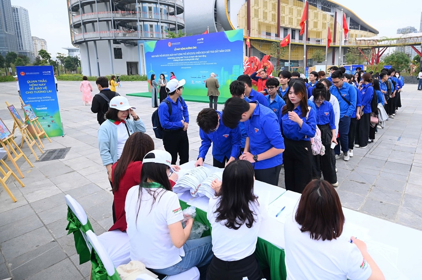 | Đông đảo các bạn trẻ trên địa bàn Thủ đô đăng ký tham gia các hoạt động liên quan đến Ngày Nước thế giới, Ngày Khí tượng thế giới. Ảnh: TÙNG ĐINH |