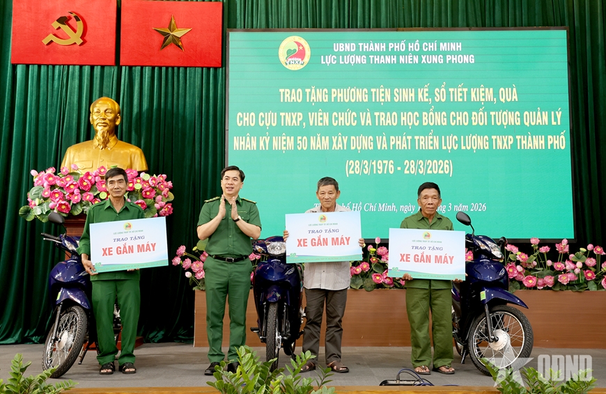 | Lực lượng TNXP TP Hồ Chí Minh trao tặng phương tiện sinh kế đến những hoàn cảnh khó khăn. |