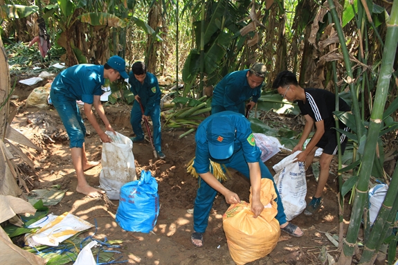 Lực lượng dân quân giúp khắc phục sự cố đê bị vỡ thuộc khu vực 3, phường Cái Khế, quận Ninh Kiều, TP Cần Thơ. |