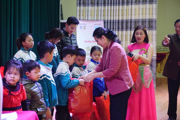 Các em nhỏ được nhận những phần quà Tết để đón một mùa xuân ấm áp. |