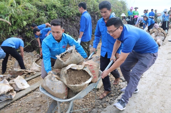 Đoàn viên, thanh niên tỉnh Lào Cai tham gia xây dựng đường giao thông nông thôn. |