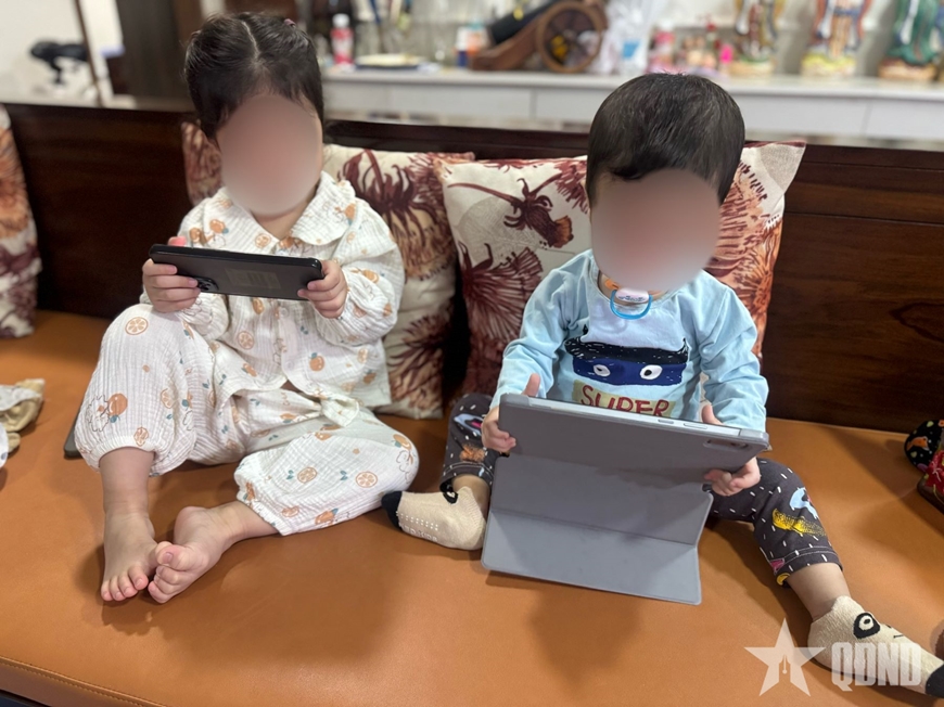 | Nhiều trẻ em được sử dụng điện thoại thông minh từ rất sớm. Ảnh: AN AN |
