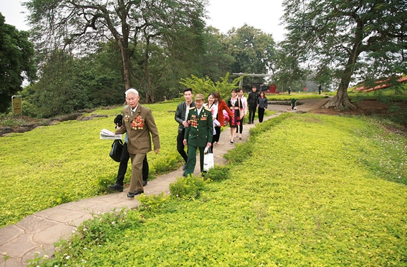 Các cựu chiến binh đến tham quan và giáo dục truyền thống cho thế hệ trẻ trên Đồi A1. |