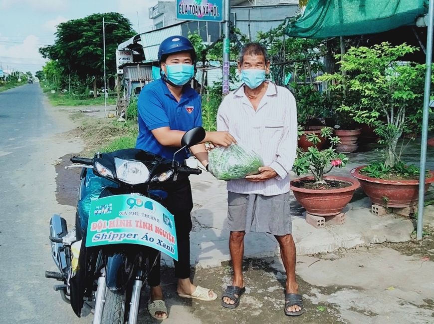| Huỳnh Tấn Lộc tham gia Đội tình nguyện Shipper áo xanh. |