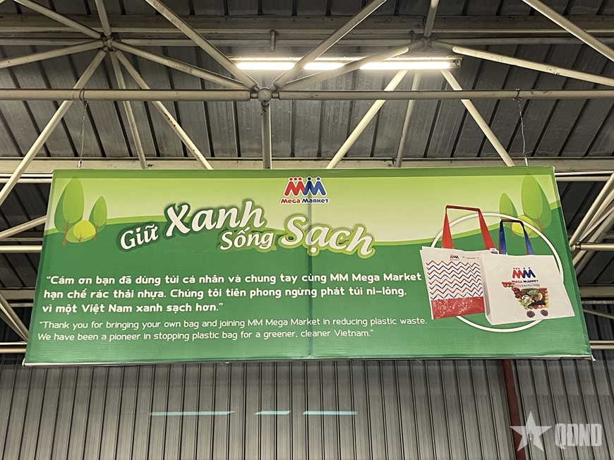 Trước yêu cầu cấp thiết trên, nhiều giải pháp đã được đặt ra ngay từ khâu mua sắm và phân phối hàng hóa. Trong đó, các hệ thống bán lẻ giữ vai trò quan trọng đối với việc định hình thói quen tiêu dùng của người dân. Một trong những mô hình tiên phong là MM Mega Market. Trong nhiều năm qua, hệ thống này đã ngừng phát túi nilon, thay vào đó, khách hàng có thể sử dụng miễn phí các thùng carton tái chế hoặc mang theo túi cá nhân khi đi mua sắm. Xung quanh siêu thị, các banner về chương trình thúc đẩy lối sống xanh và biển hướng dẫn cách đóng gói sản phẩm cũng được bố trí tại những khu vực dễ quan sát, giúp người mua thuận tiện tiếp cận và nắm bắt thông tin.