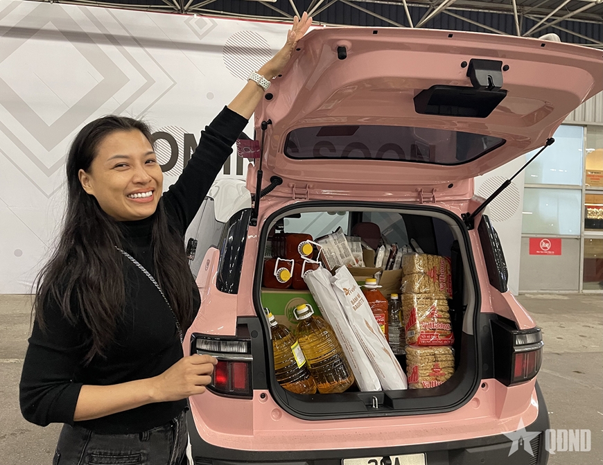| Chị Ngô Anh tận dụng không gian cốp xe để chở hàng trong hầu hết những lần đi mua sắm. |