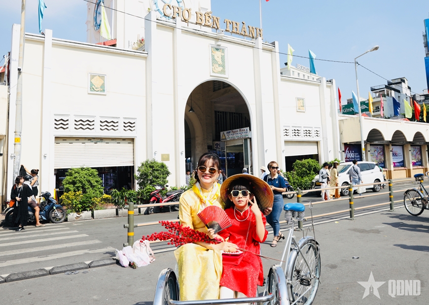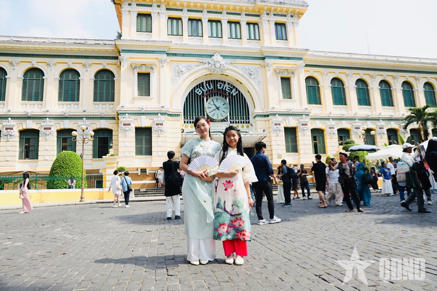 | Người dân hào hứng ghi lại khoảnh khắc năm mới tại các công trình biểu trưng của TP Hồ Chí Minh. |