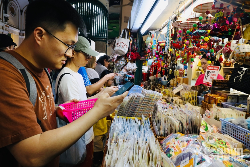 | Khách du lịch yêu thích các sản phẩm thủ công được bày bán tại Bưu điện thành phố. |