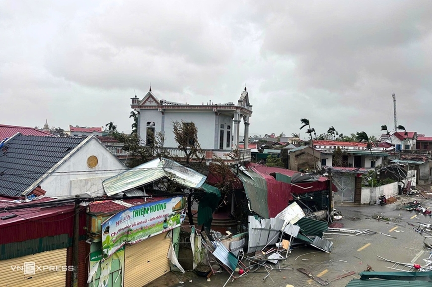Thôn Phượng Mao, xã Hoằng Giang, tỉnh Thanh Hóa ngổn ngang sau cơn lốc xoáy của bão số 10. Ảnh: VnExpress |