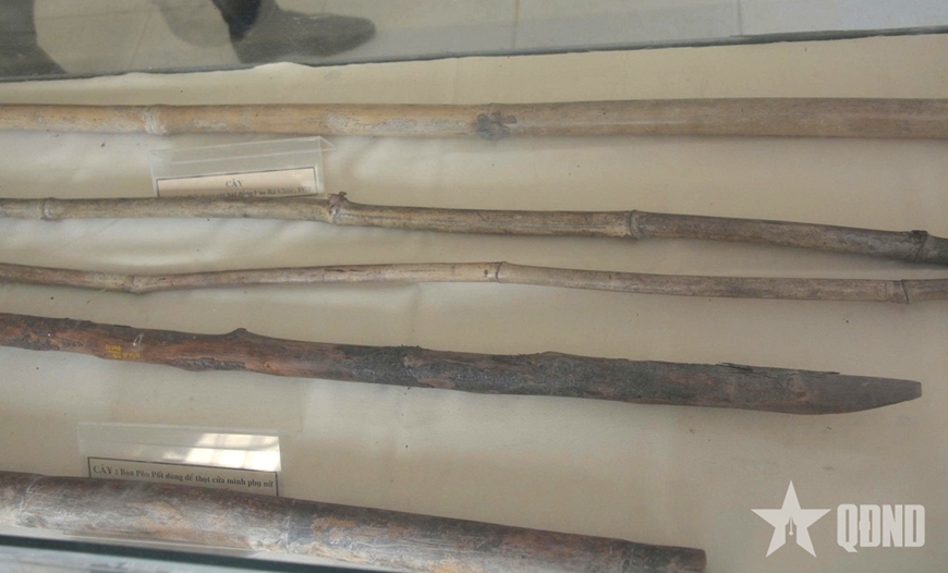 | Các dụng cụ sắc nhọn, thô sơ từng được kẻ thù sử dụng cho các hình thức tra tấn dã man đối với phụ nữ và trẻ nhỏ. |