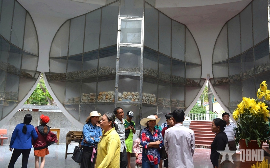 | Người dân tham quan Nhà mồ Ba Chúc. |