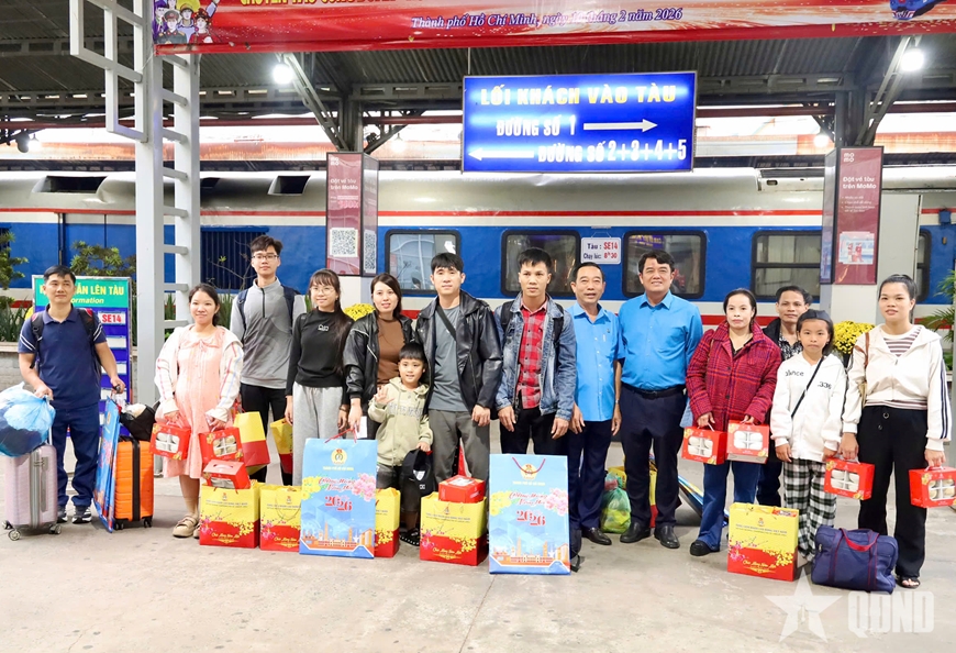 Tại Cảng hàng không quốc tế Tân Sơn Nhất, chương trình “Chuyến bay Công đoàn - Xuân 2026” đã đưa 1.050 đoàn viên công đoàn, người lao động và thân nhân có hoàn cảnh khó khăn về quê đón Tết trên 5 chuyến bay từ TP Hồ Chí Minh đến Thủ đô Hà Nội, Nghệ An và Huế. Đại diện các cấp công đoàn đã trao gửi đến người lao động những lời chúc tốt đẹp cùng phần quà ấm áp, nghĩa tình của phương Nam. Nhiều gia đình công nhân không giấu được niềm xúc động khi được tạo điều kiện về quê đón Tết bằng đường hàng không sau nhiều năm lao động xa quê hương.