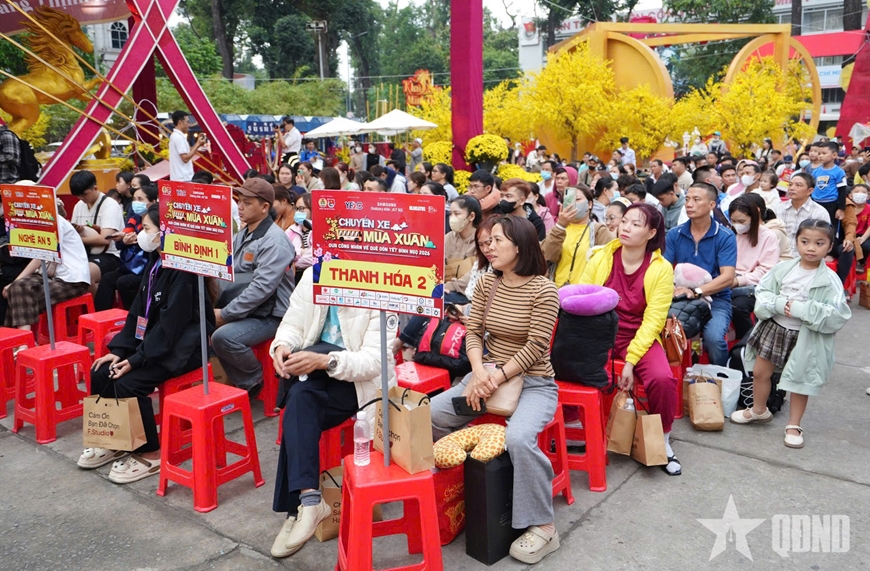 | Đông đảo người lao động tại TP Hồ Chí Minh được hỗ trợ về quê đón Tết trên những chuyến xe, chuyến tàu nghĩa tình. |