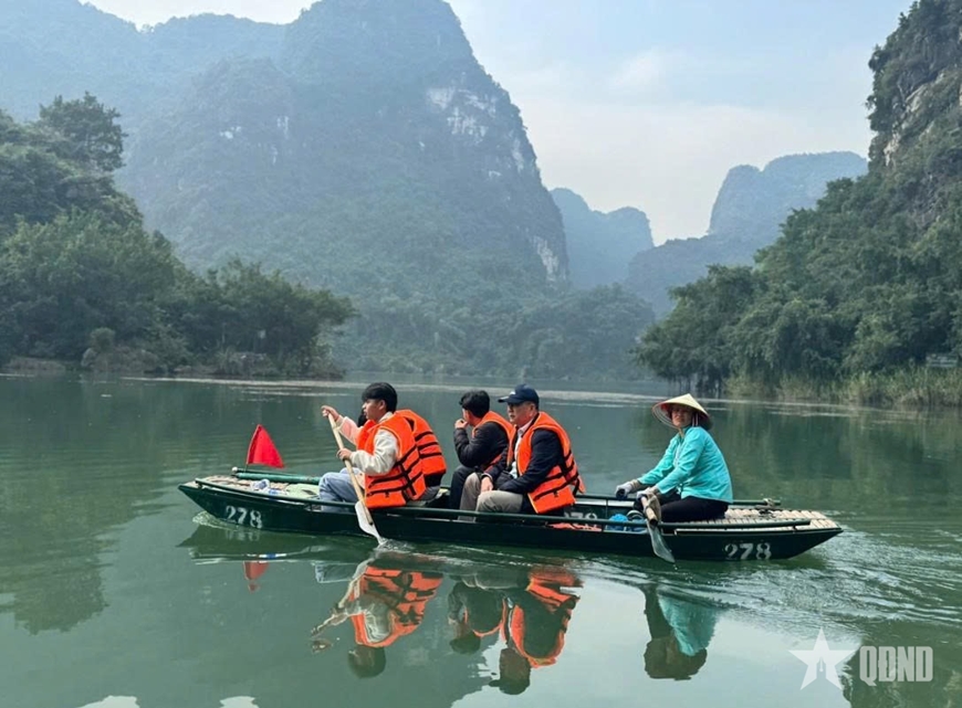 Không chỉ tận hưởng không khí trong lành của buổi sáng mùa đông trên sông nước Tràng An, các sinh viên Campuchia còn có chuyến “hành quân về nguồn” tới Bộ tư lệnh và Bảo tàng Quân đoàn 12.