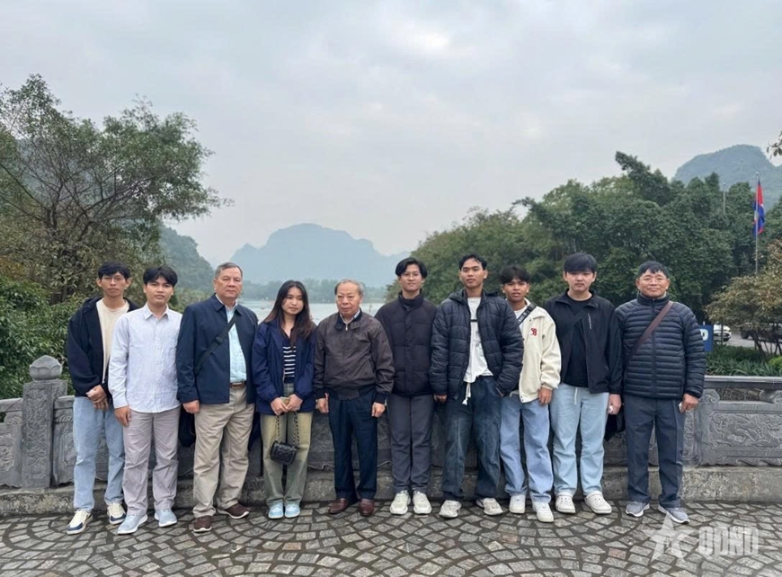 | Lãnh đạo Hội Hữu nghị Việt Nam - Campuchia, cựu quân tình nguyện Quân đoàn 2 và các sinh viên Campuchia tham quan Khu du lịch sinh thái Tràng An. |