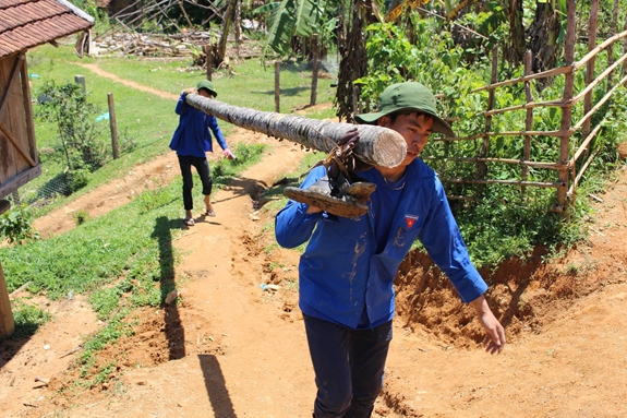 Vận chuyển gỗ giúp nhân dân làm nhà tình thương.