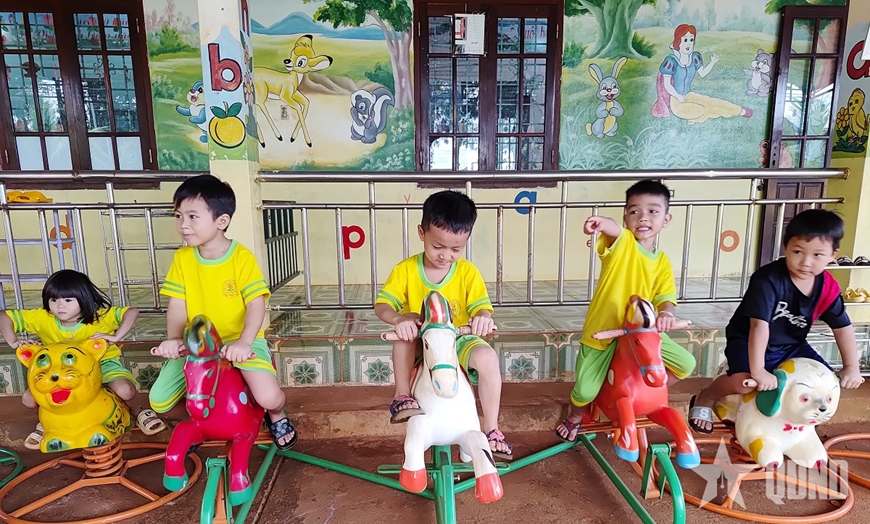 Theo Trung tá QNCN Chu Thị Quỳnh Phương, Hiệu trưởng Trường Mầm non Hoa Hồng, thời gian đầu đến lớp, phần lớn các cháu chưa nói được tiếng phổ thông, nhút nhát, ngại giao tiếp hơn so với các bạn nên việc dạy và chăm sóc gặp nhiều khó khăn. Khi về nhà, phụ huynh cũng không hỗ trợ được nhiều nên các cô xác định phải cố gắng gấp đôi. Không chỉ tăng cường vốn tiếng Việt cho trẻ em đồng bào DTTS, các cô còn tham gia các lớp học tiếng Gia Rai để xóa rào cản về ngôn ngữ.