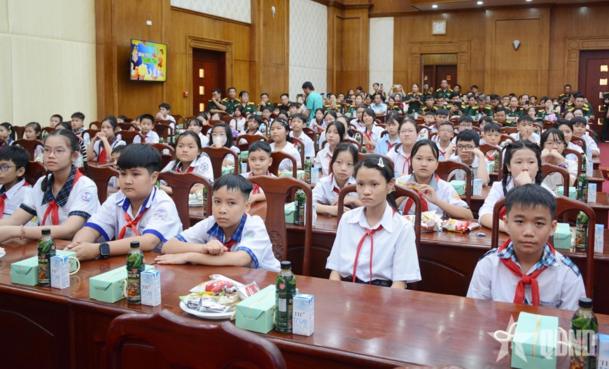 Các em thiếu niên, nhi đồng dự tuyên dương ở Bộ tư lệnh Quân khu 7. |