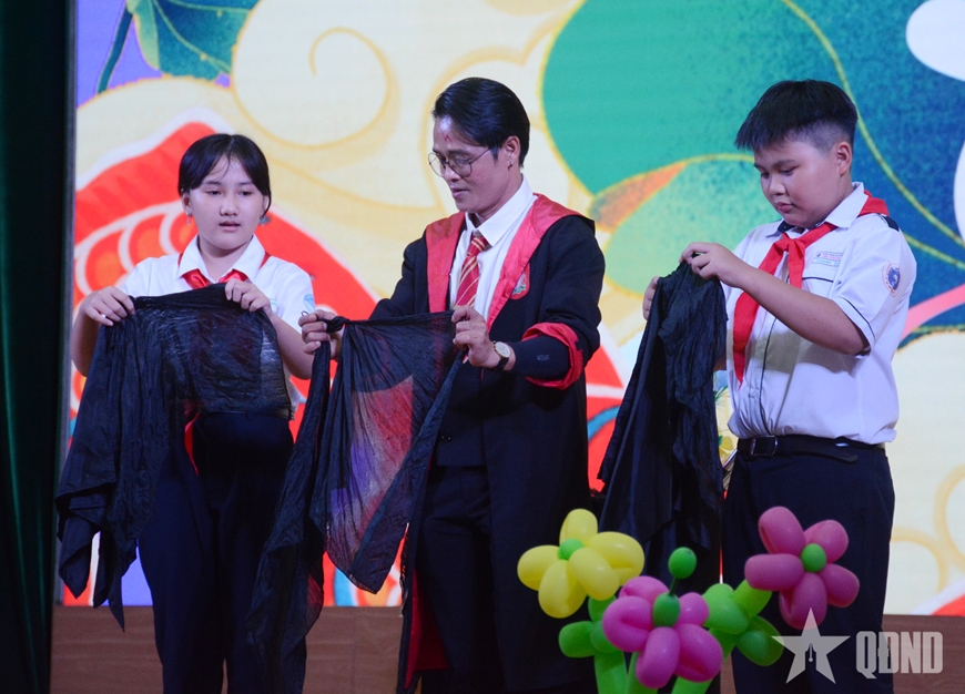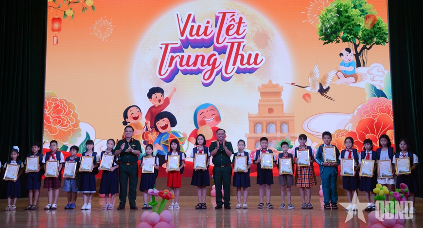 Các em thiếu niên, nhi đồng có thành tích xuất sắc được Quân khu 7 tuyên dương, trao thưởng. |