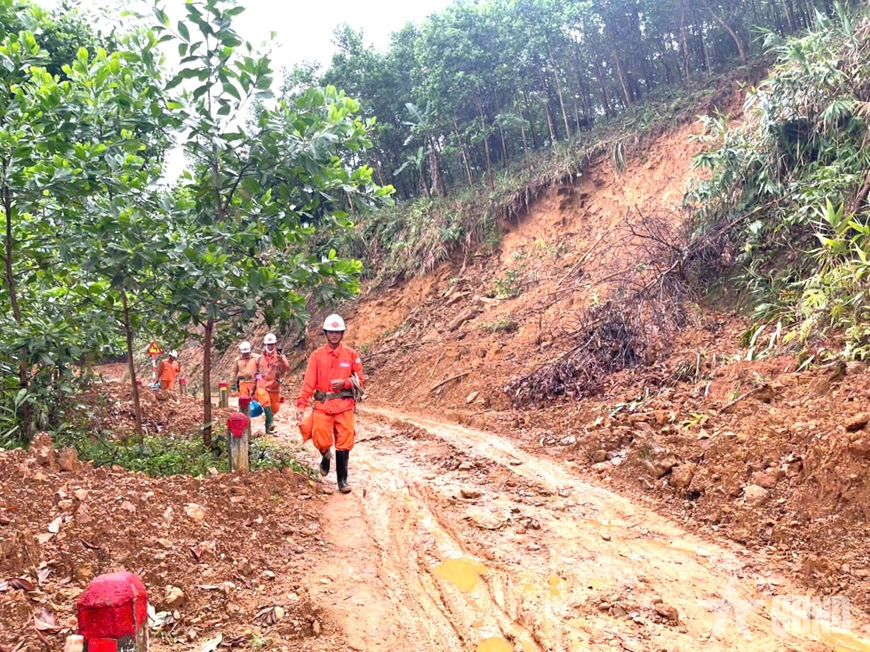 Đội trưởng Đội Quản lý điện Trà My Phạm Trương Vương Trịnh chia sẻ về hành trình thi công: “Có những ngày mưa dầm cả tuần, đường sạt lở, xe không vào được. Chúng tôi phải thuê thêm nhân công, xe chuyên dụng để vận chuyển vật tư vào điểm thi công”.
