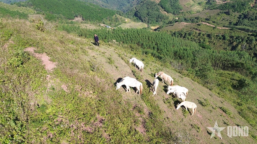 Mô hình chăn nuôi ngựa bạch ở Quan Sơn chủ yếu là chăn thả bán tự nhiên.
