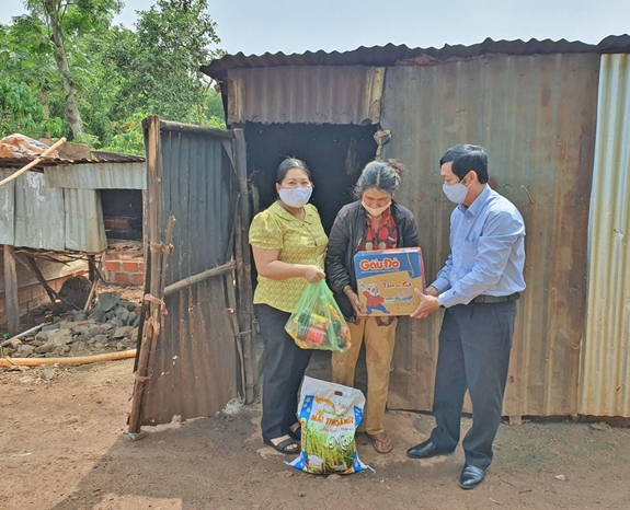 Ông Nguyễn Tiến Dũng, Chủ tịch Công đoàn PC Gia Lai trao quà cho bà Breh.