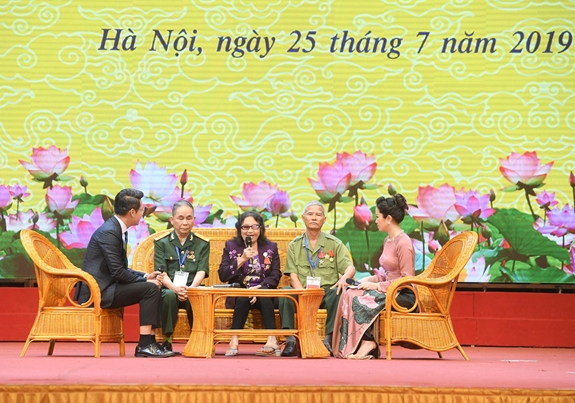 Phát biểu tại buổi gặp mặt, đồng chí Đào Ngọc Dung, Ủy viên Trung ương Đảng, Bộ trưởng Bộ LĐ-TB&XH cho biết: Thực hiện chỉ thị và mong muốn của Chủ tịch Hồ Chí Minh, trong suốt 72 năm qua, Đảng và Nhà nước ta đặc biệt quan tâm, chăm lo, chăm sóc thương binh, thân nhân gia đình liệt sĩ, người có công (NCC) với cách mạng. Các hoạt động “đền ơn đáp nghĩa” ngày càng đi vào chiều sâu và có tính xã hội hóa cao. Các phong trào xây dựng nhà tình nghĩa, tặng sổ tiết kiệm tình nghĩa, xây dựng Quỹ Đền ơn đáp nghĩa, phụng dưỡng Bà mẹ Việt Nam anh hùng, chăm sóc con liệt sĩ, đi tìm hài cốt đồng đội, tu sửa, nâng cấp các nghĩa trang, đài tưởng niệm liệt sĩ... ngày càng thu hút sự tham gia của toàn xã hội.