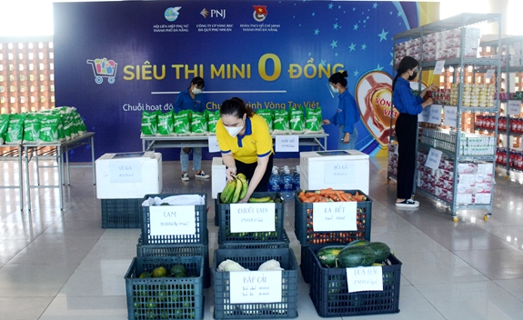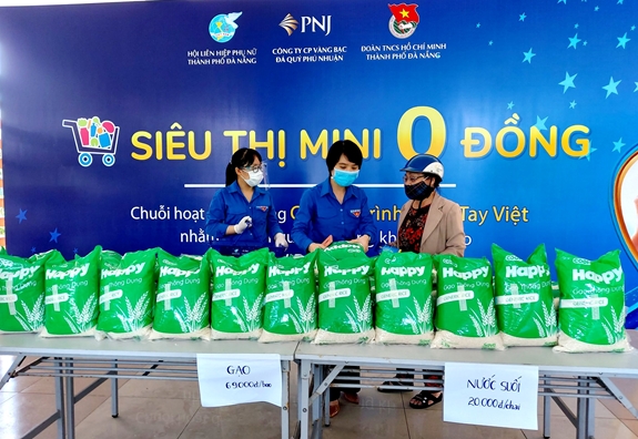 Với mong muốn góp phần cùng cấp ủy, chính quyền địa phương chia sẻ, giúp đỡ hộ nghèo, người lao động bị ảnh hưởng bởi dịch Covid-19 trên địa bàn, sáng 8-7, Thành đoàn Đà Nẵng, Công ty cổ phần Vàng bạc đá quý Phú Nhuận (PNJ) và Hội Liên hiệp Phụ nữ TP Đà Nẵng phối hợp tổ chức “Siêu thị mini 0 đồng”.