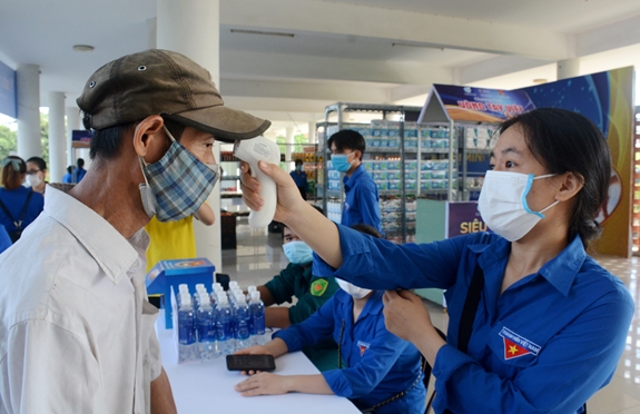| Người dân trước khi vào siêu thị đều được kiểm tra thân nhiệt. |
