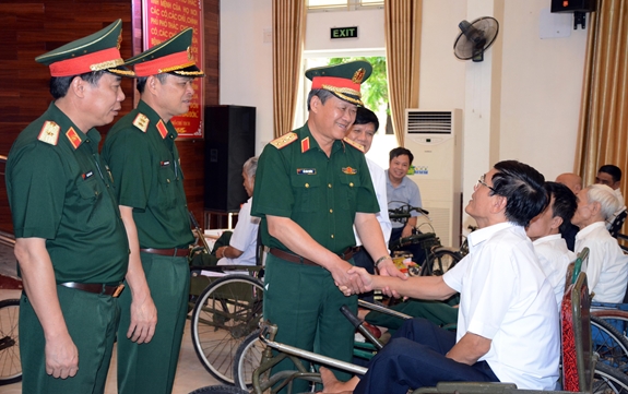 Lãnh đạo Bộ Quốc phòng trò chuyện, thăm hỏi thương binh, bệnh binh tại Trung tâm Điều dưỡng Thương binh Thuận Thành (Bắc Ninh). Ảnh: MINH MẠNH |