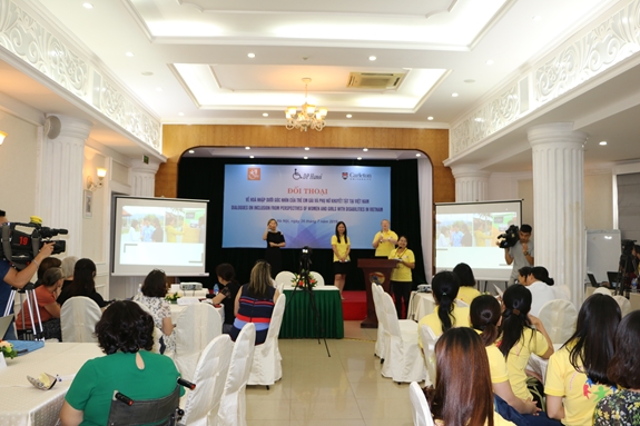 Các trẻ em gái và phụ nữ khuyết tật chia sẻ những suy nghĩ, mong muốn của bản thân tại đối thoại. |