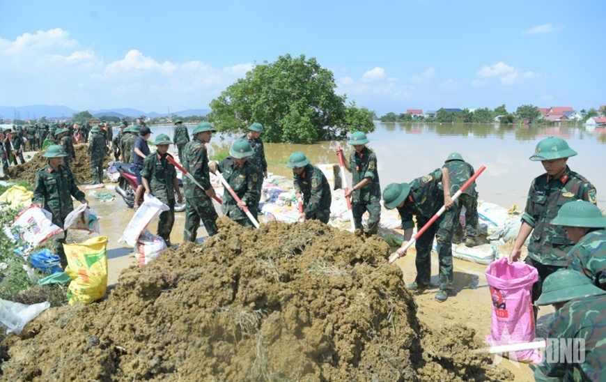 * Tại tỉnh Bắc Ninh, Quân khu 1 đã chỉ đạo các đơn vị: Sư đoàn 3, Bộ CHQS tỉnh Bắc Ninh, Lữ đoàn Công binh 575 huy động hàng nghìn lượt cán bộ, chiến sĩ, dân quân tự vệ tham gia di dời gần 19.000 con gia súc, 646.000 con gia cầm của người dân vùng ngập lụt đến nơi an toàn, đồng thời cùng các lực lượng khẩn trương gia cố bờ đê. (TUẤN NAM - PHÚ SƠN)