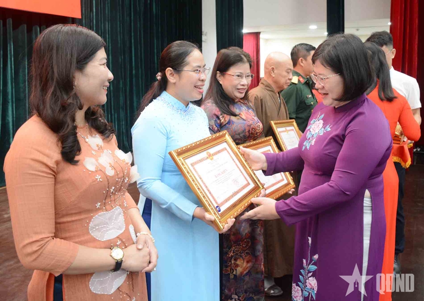 Đồng chí Dương Anh Đức, Trưởng ban Tuyên giáo và Dân vận Thành ủy TP Hồ Chí Minh trao Bằng khen của UBND Thành phố tặng các cá nhân điển hình.