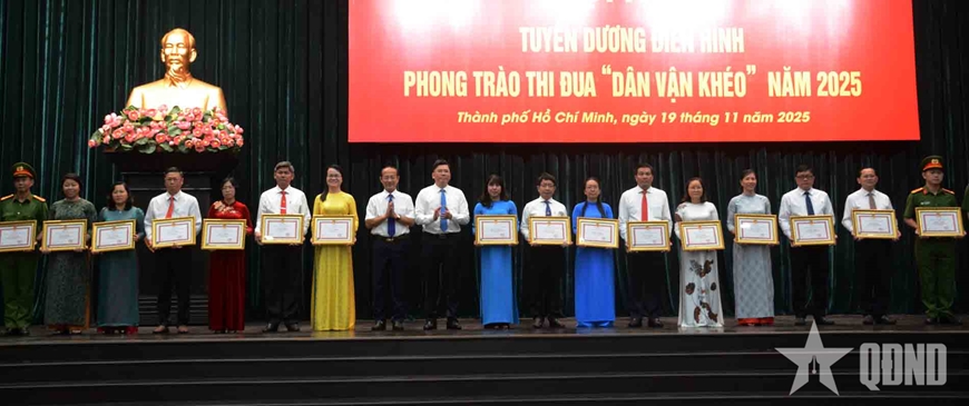 Tại hội nghị, Thành ủy TP Hồ Chí Minh tuyên dương, tặng Bằng khen của UBND Thành phố cho 159 tập thể và 62 cá nhân điển hình tiên tiến trong Phong trào thi đua “Dân vận khéo” năm 2025. Đây là những tập thể, cá nhân gương mẫu chấp hành pháp luật, sâu sát, trực tiếp bám cơ sở, linh hoạt trong công tác tuyên truyền, vận động nhân dân, góp phần tạo chuyển biến tích cực ở địa phương.
