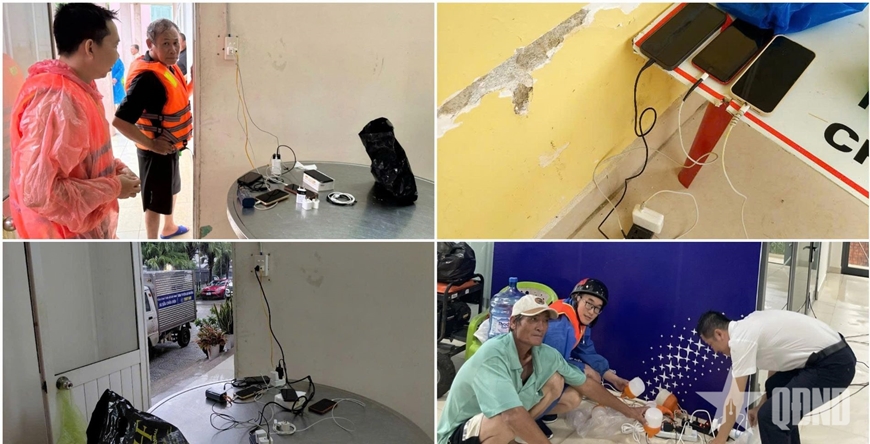 Tại khu vực gần chợ Nam Phước bị ngập sâu, người dân gặp khó khăn trong việc sạc điện thoại, pin dự phòng và bảo đảm an toàn điện sinh hoạt. Trước tình hình đó, trụ sở Đội Quản lý điện Duy Xuyên (số 234 Nguyễn Hoàng, xã Nam Phước, TP Đà Nẵng) đã chủ động mở rộng khuôn viên đơn vị làm nơi gửi xe miễn phí, bố trí khu vực sạc thiết bị điện cho người dân. Đơn vị cũng cử công nhân trực hỗ trợ kiểm tra, sửa chữa miễn phí thiết bị điện tại khu vực không bị ngập.