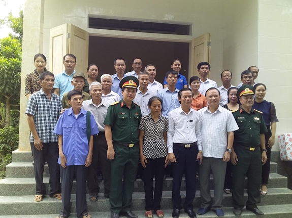 Đại diện Bộ tư lệnh Quân khu 4 và chính quyền, đoàn thể địa phương trao nhà tình nghĩa tặng gia đình người có công với cách mạng ở xã Sơn Thịnh (Hương Sơn, Hà Tĩnh). Ảnh: Mai Thanh Hải. |