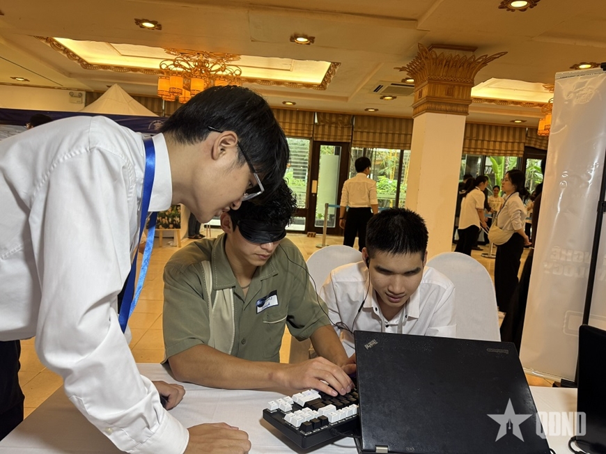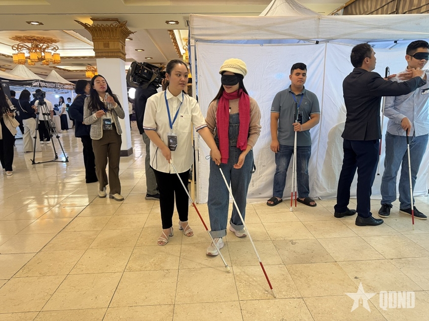 Tôi được một bạn tình nguyện viên đưa cho chiếc băng bịt mắt để bước vào hội trường. Chỉ vài chục bước chân trong bóng tối mà tôi đã thấy choáng, tay bấu chặt vào cánh tay bạn, sợ bước lệch hoặc va vào vật gì đó. Khi đến bàn và được tháo băng, bạn hỏi: “Chị thấy thế nào?”. Tôi lặng đi vài giây. Từ người sáng mắt bỗng chìm vào một không gian không màu, không phương hướng, cảm giác bất lực khiến tôi hiểu phần nào cuộc sống của người khiếm thị. Và họ phải sống như thế cả đời, học tập, làm việc, tự lập… Thật đáng khâm phục.