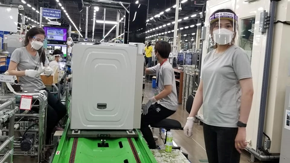 | Công nhân làm việc tại các khu công nghiệp công nghệ cao bảo đảm phòng, chống dịch. Ảnh: Bộ Y tế |
