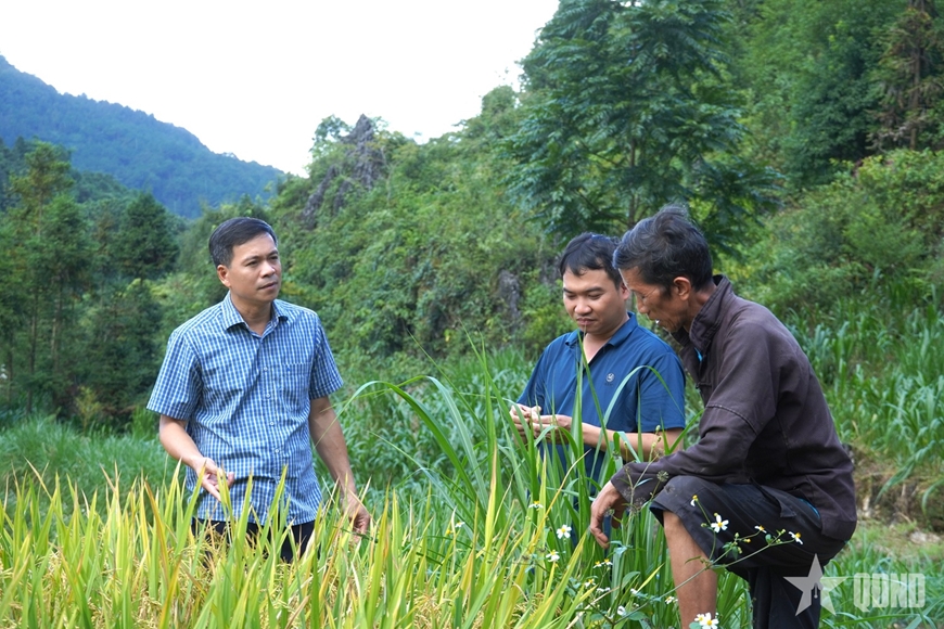 Lãnh đạo xã Mèo Vạc (Tuyên Quang) kiểm tra, nắm bắt tình hình và hướng dẫn người dân áp dụng khoa học kỹ thuật vào sản xuất, phát triển kinh tế gắn với xây dựng nếp sống mới. |