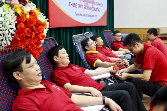 Cán bộ Agribank Thanh Hóa tham gia hiến máu tình nguyện. |