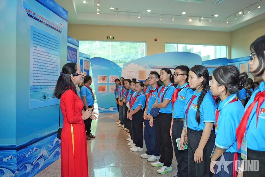 | Thiếu nhi TP Hồ Chí Minh thăm, giao lưu tại Bộ tư lệnh Vùng Cảnh sát biển 3. |