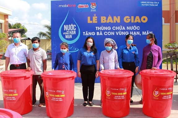 Bàn giao 200 thùng chứa nước tặng bà con vùng hạn, mặn tỉnh Sóc Trăng.