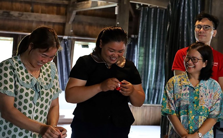 Chị Lò Thị Phấn (thứ hai, từ trái sang) tham gia một buổi sinh hoạt của Câu lạc bộ "Gia đình hạnh phúc - vun đắp yêu thương”.